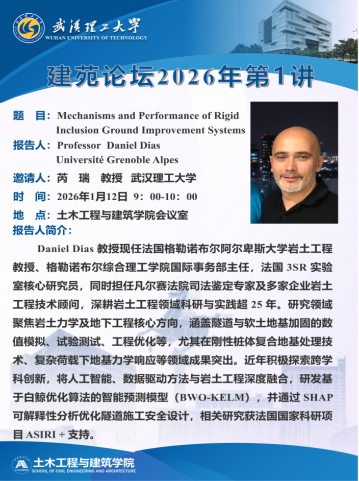 “建苑论坛”2026 第1讲 主题:Mechanisms and Performance of Rigid Inclusion Ground Improvement Systems